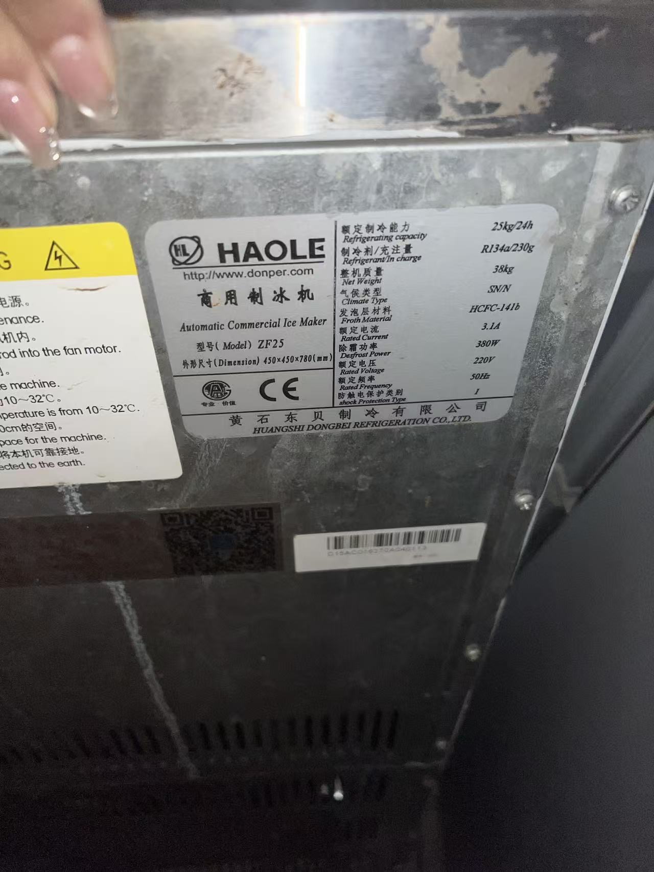 【二手制冰机转让】正品东贝制冰机,8成新,制冰量25公斤,性能完好,出冰快制冷稳,结实耐用,现低价转让,价格面议,在星光美食街中段。联系电话:18672706811