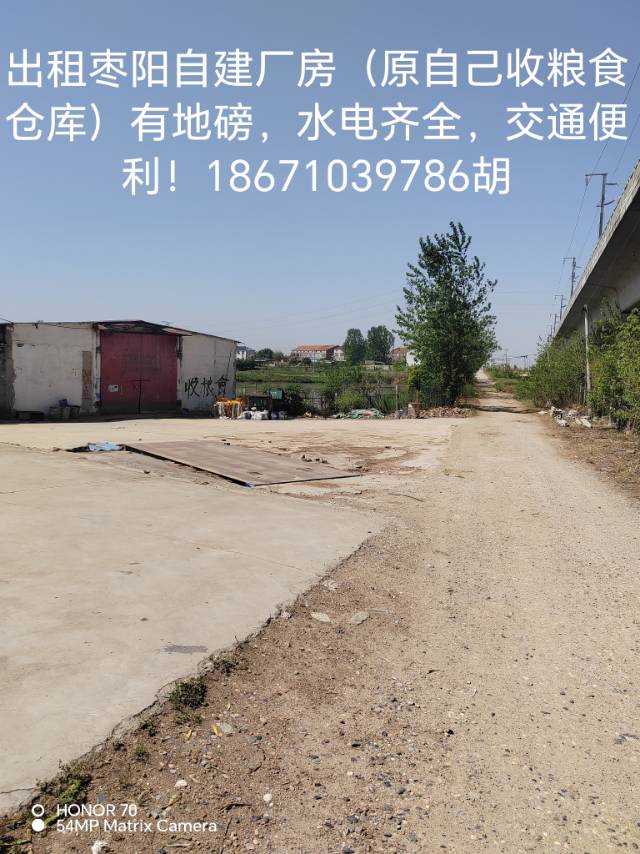 【厂房出租】位于枣阳市区附近,厂房出租!水电齐全,交通便利,屋顶不漏,排水良好!有三相电,外场地宽广,价格美丽!联系电话:18671039786